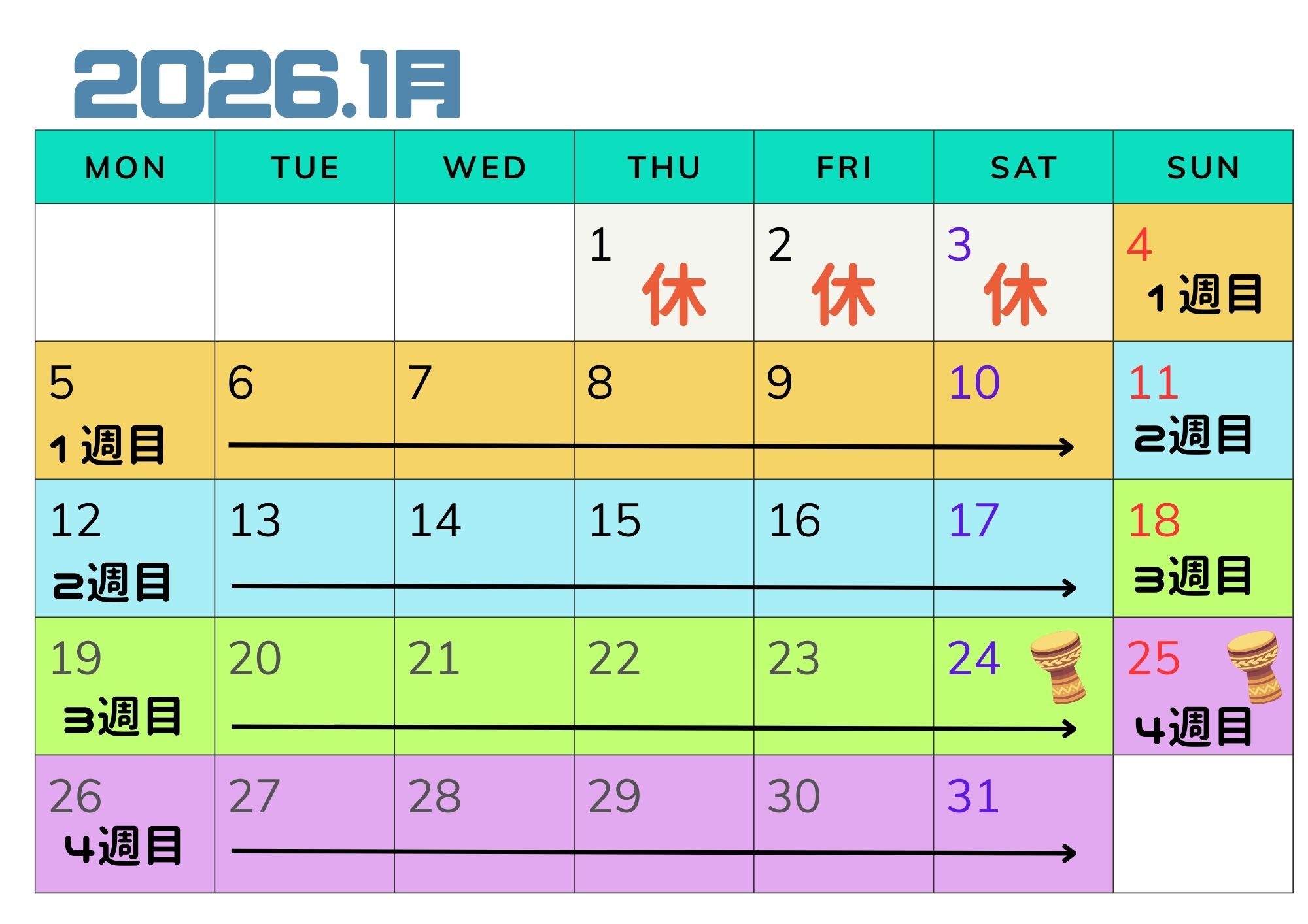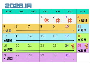 2026年1月、2月、3月のスタジオお休み予定