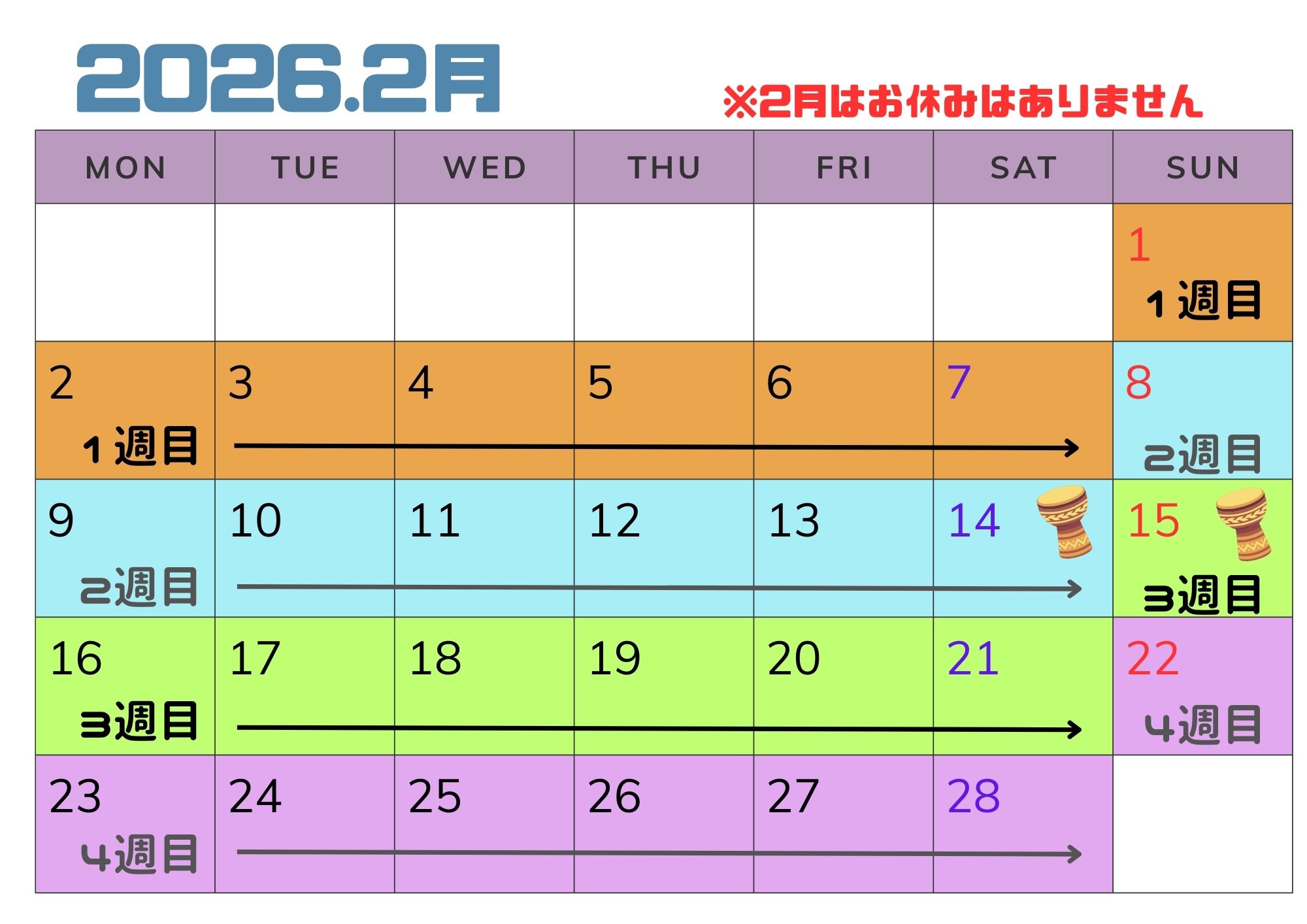 2月のお休みはありません